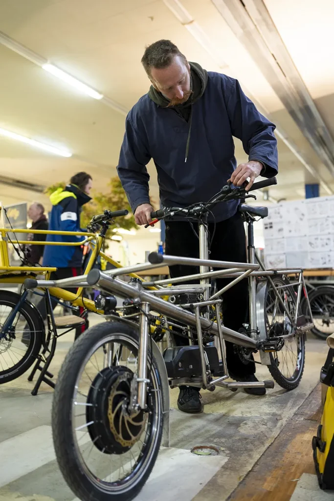 Pour l’occasion, Tiphen de Miel d’Ours nous a même prêté son Convivial, un biporteur disposant d’une nacelle pour accueillir deux enfants, qui a ravi petits et grands. Les visiteurs ont également pu découvrir la Girouette, notre porteur universel de levier de vitesse pour vélo, ainsi que le Pottok, un biporteur fabriqué par Adrien de Véloma.